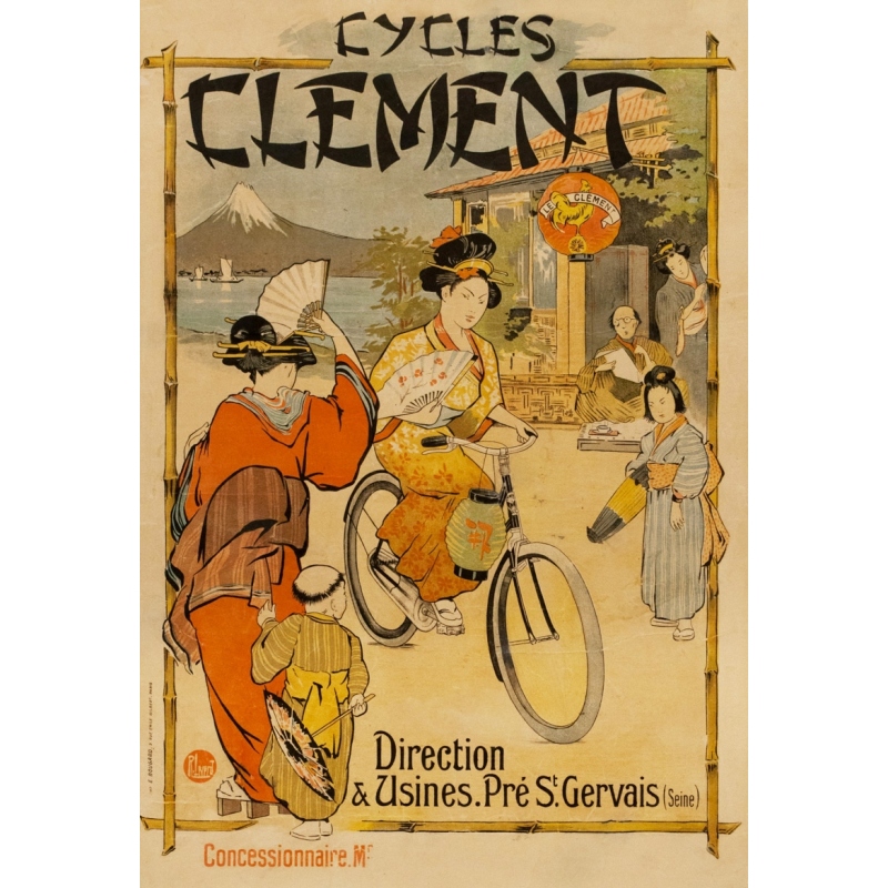 Original vintage advertising poster realised by R.Lrprd in 1906, Cycles Clément Japon