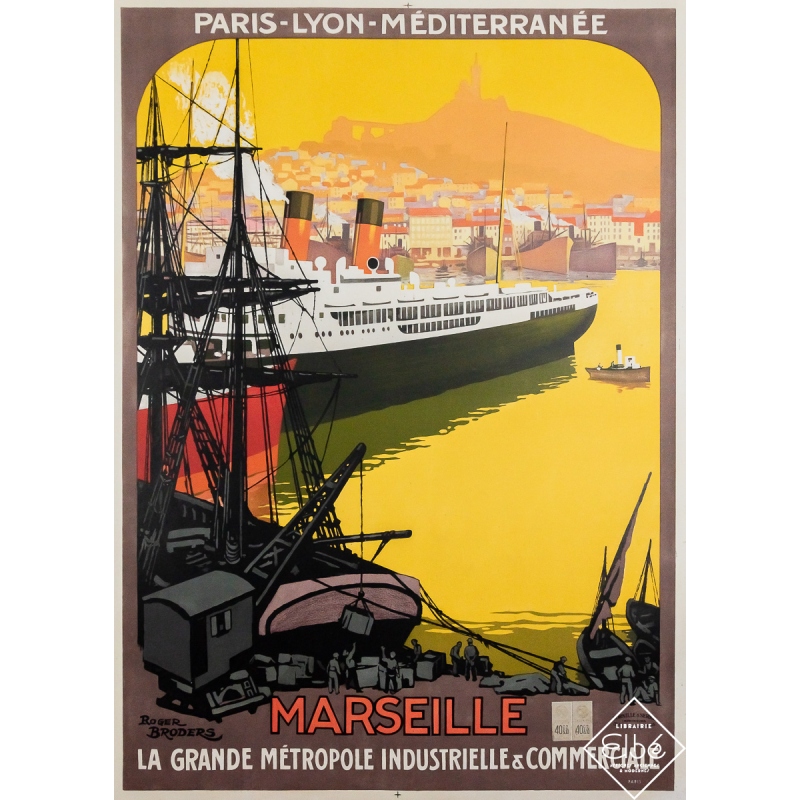Original vintage travel poster created by Roger Broders in 1925, Marseille - The great industrial and commercial metropolis - PLM - Paris Lyon Méditerranée