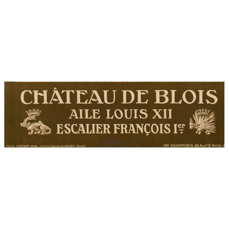 Vintage travel poster by rail realised by Constant Duval in 1920, Chemins de fer de Paris à Orléans (Railways from Paris to Orléans)- Château de Blois, Aile Louis XII escalier François Ier