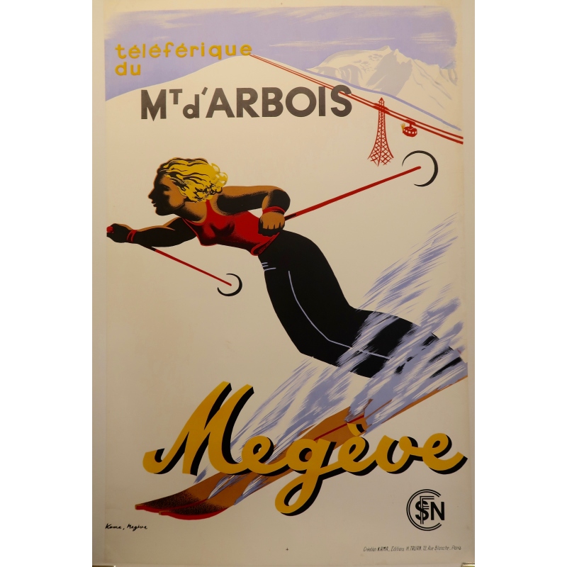 Affiche ancienne réalisée et signée par Kama pour le Téléférique du Mont d'Arbois.