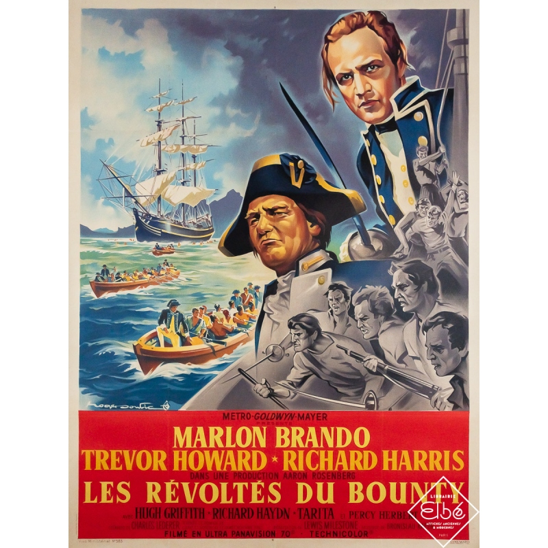 Affiche ancienne de cinéma réalisée par Roger Soubie en 1962, Les Révoltés du Bounty