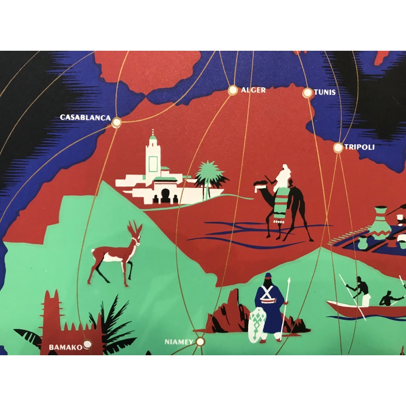 Très belle lithographie datant des années 1940 pour AIR FRANCE avec comme thème Afrique Centrale