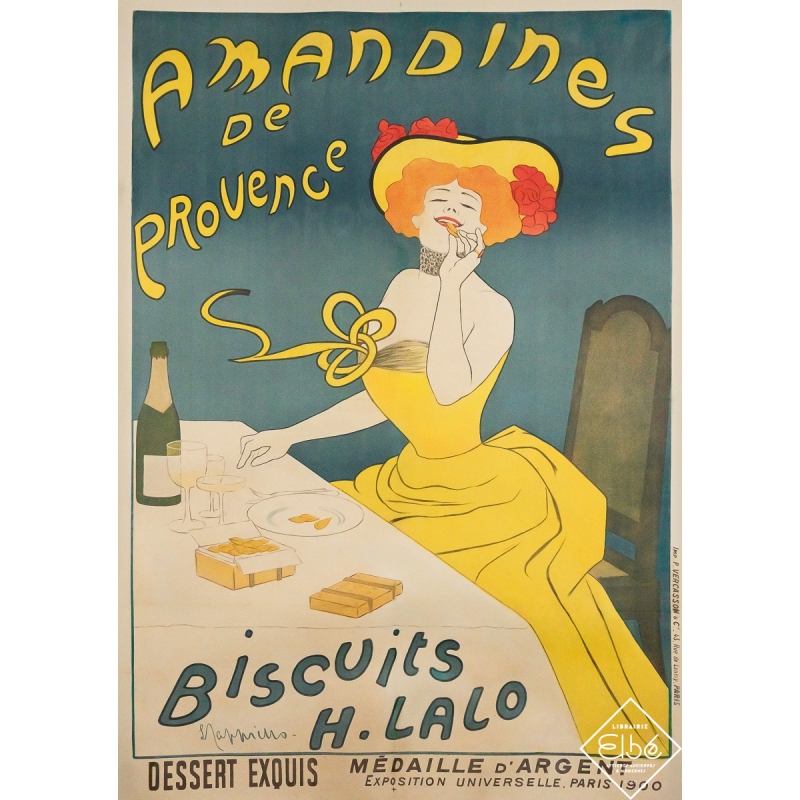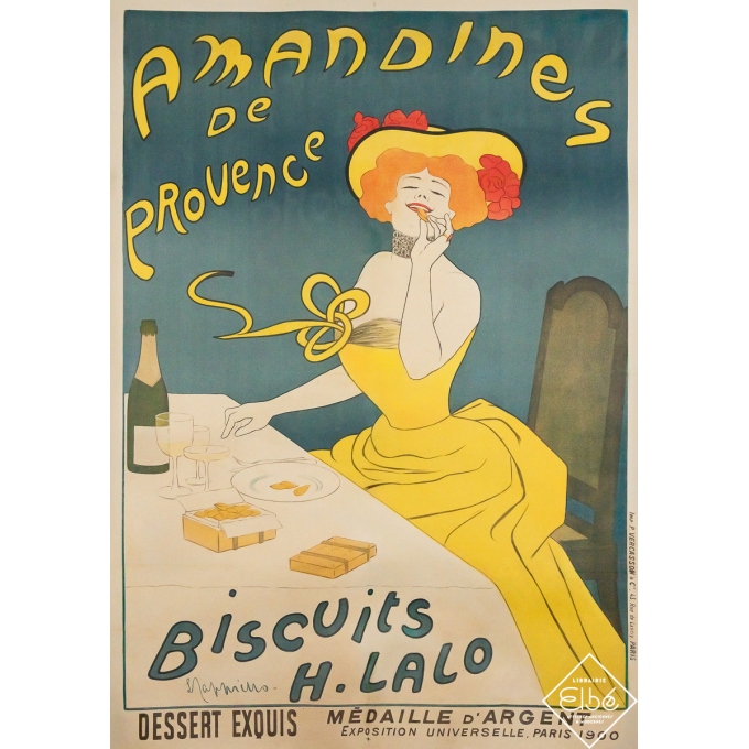 Affiche ancienne originale de publicité réalisée par Leonetto Cappiello en 1900, Amandines de Provence - Biscuits H. Lalo