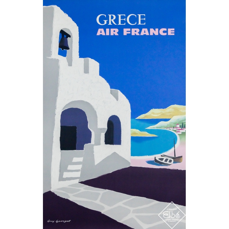 Affiche ancienne originale de voyage réalisée par Guy Georget en 1959, Air France Grèce