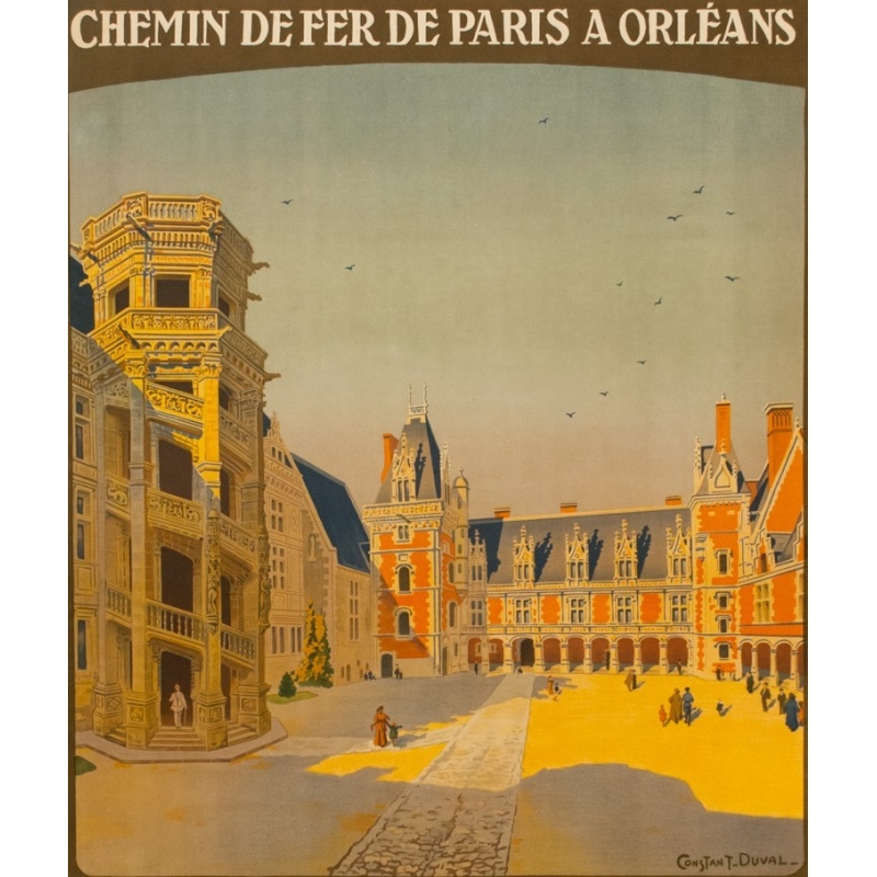 Affiche ancienne de voyage par rail réalisée par Constant Duval en 1920, Chemins de fer de Paris à Orléans - Château de Blois, Aile Louis XII escalier François Ier